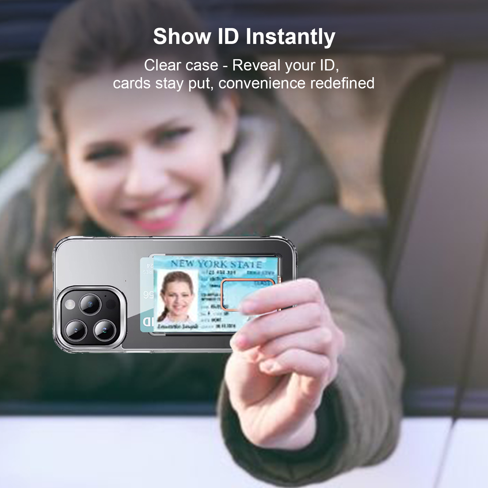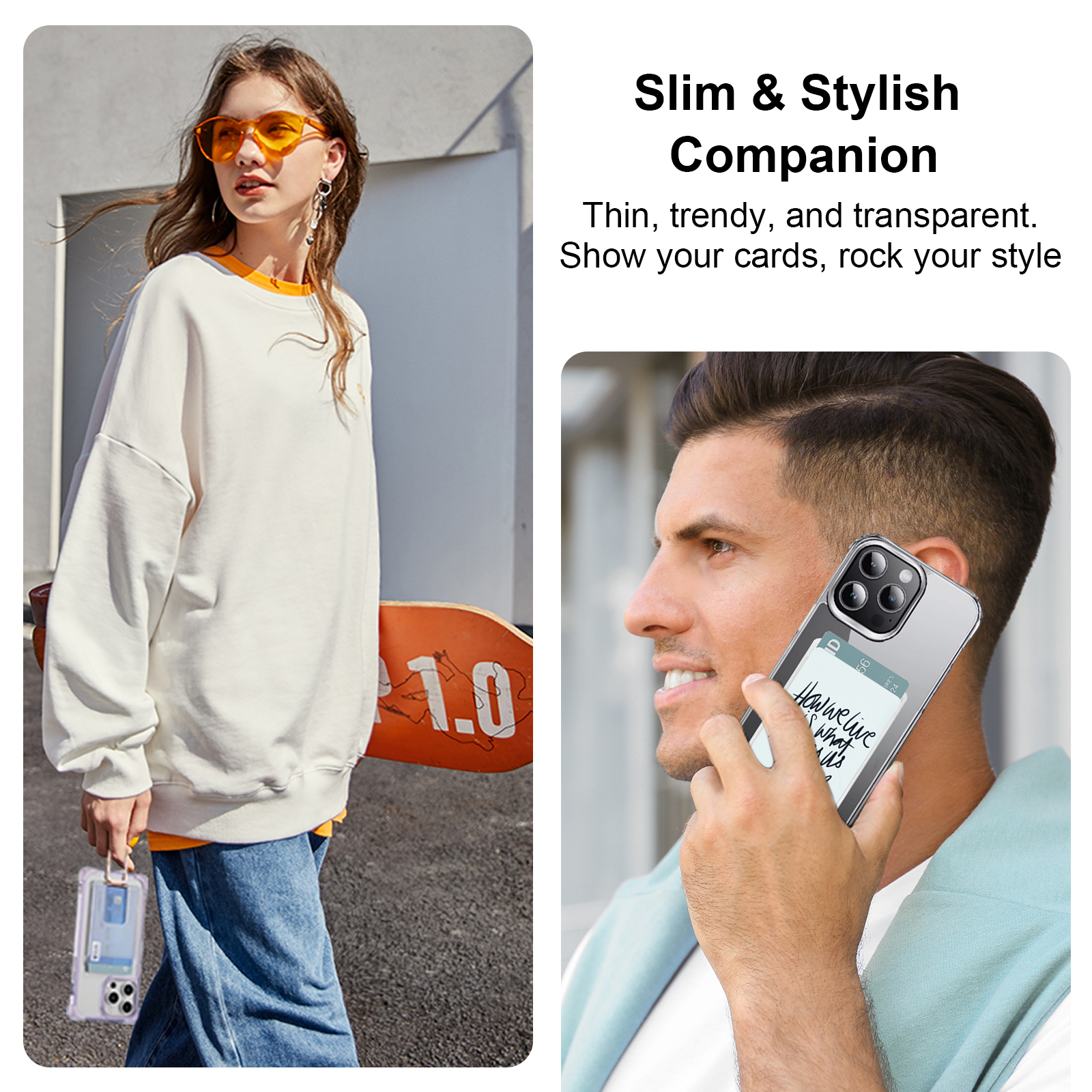 𝐐𝐮𝐢𝐜𝐤 𝐂𝐚𝐫𝐝 𝐀𝐜𝐜𝐞𝐬𝐬: This clear phone wallet designed with precision, the special groove ensures seamless and instant card access on the move. It's tailor-made for your driving licence, photo, credit, or ID card. Keep the 2 essential cards you need within effortless reach. Simply insert your finger into the ingeniously crafted bottom groove to access your card whenever you desire, without having to detach the wallet.